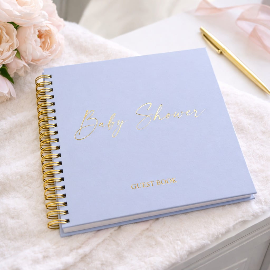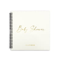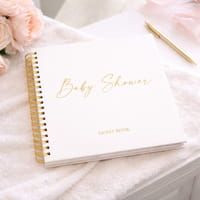 Create a beautiful keepsake from the baby shower with this guest book. It includes 26 pre-filled pages where 23 guests, the mother-to-be, and the father-to-be can write down their predictions, wishes, and sweet messages for the baby.