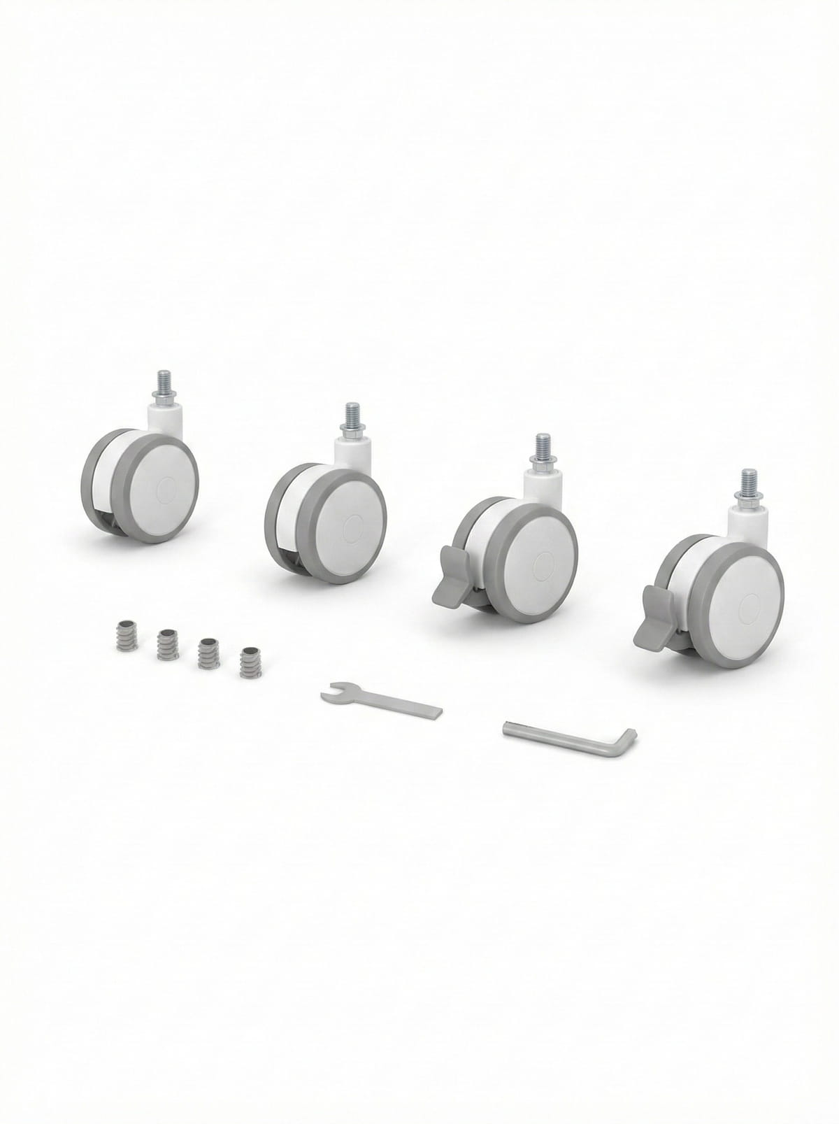 KOTTO crib wheels make it easy to move your baby’s crib from room to room while keeping it stable and safe when parked. The set includes four wheels, two with locks, and is designed to protect floors with a rubberized finish that rolls quietly over wood, tiles, and other surfaces.