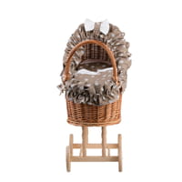 The wicker doll pram is a beautiful blend of tradition, handcrafted workmanship and modern functionality. Made from eco-friendly wicker and fitted with soft textile accessories, it makes an ideal toy for developing a child's imagination. Each piece is a unique composition of natural materials that draws attention with its shape and aesthetics. It is a special choice for parents who value natural products and conscious decisions. All textile elements of the set can be machine washed at 30°C, making it easy to keep clean and hygienic. The basket itself can be wiped with a damp cloth to restore its fresh look.