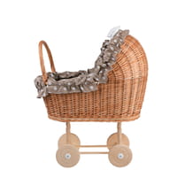 The pram has a functional handle and four stable wheels, allowing the child to push it freely over different surfaces. The trim with a bow, cushion and blanket ensure dolls and soft toys have a comfortable place to rest. The whole piece is carefully made in the EU from natural wicker following Polish basketry traditions inscribed on the UNESCO Representative List of the Intangible Cultural Heritage of Humanity. The product is durable, safe and ready for intensive use.
