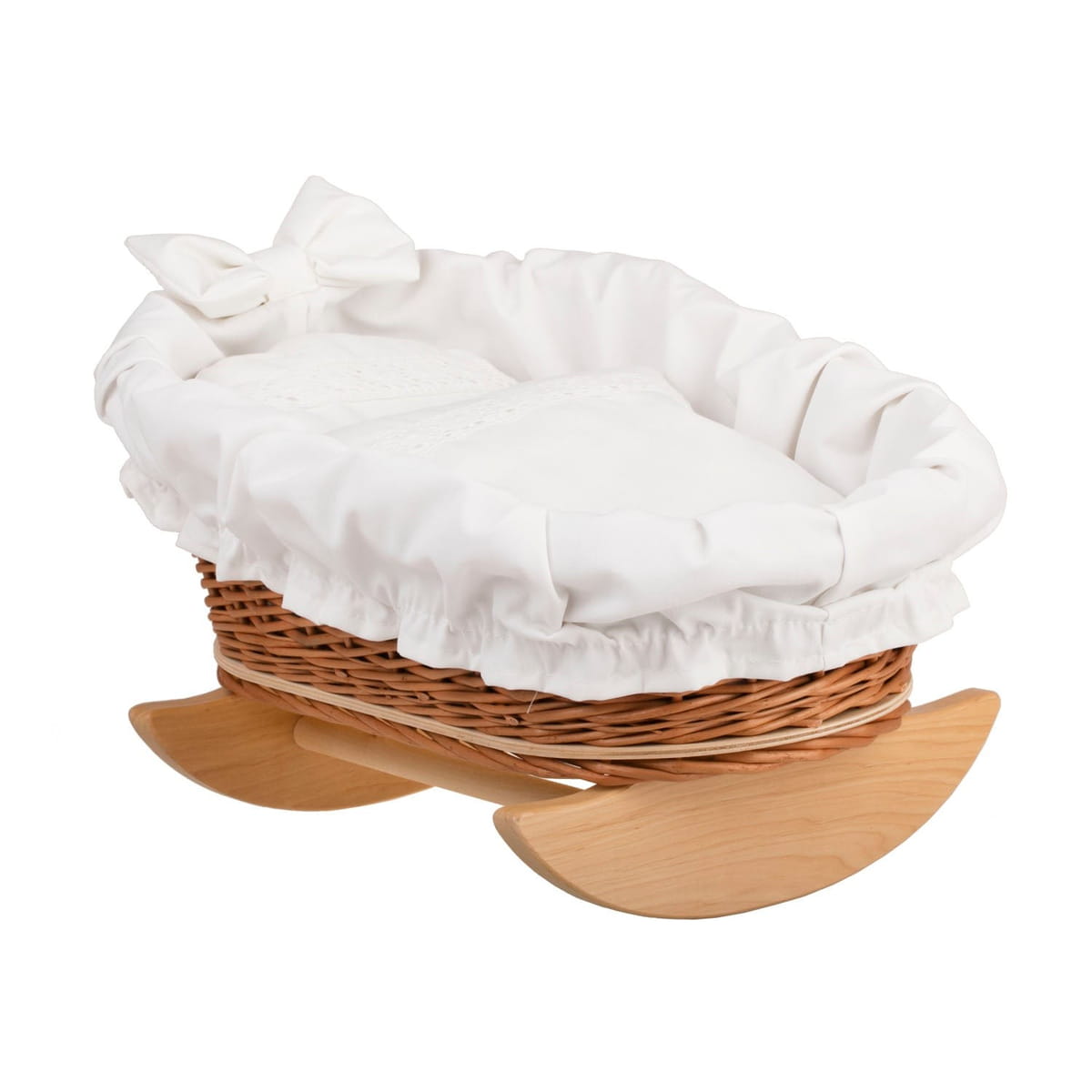 Mimi Wicker Cradle For Dolls With White Lining, Pillow And Duvet