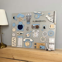 A best-selling Montessori busy board in a practical, medium-large format that works well in playrooms and classrooms. Designed for hands-on skill building through interactive, real-world elements.