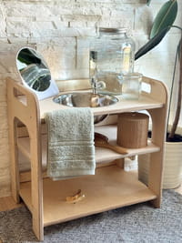 Bring independence and natural beauty to your child’s daily routine with this handcrafted wooden Montessori washbasin.