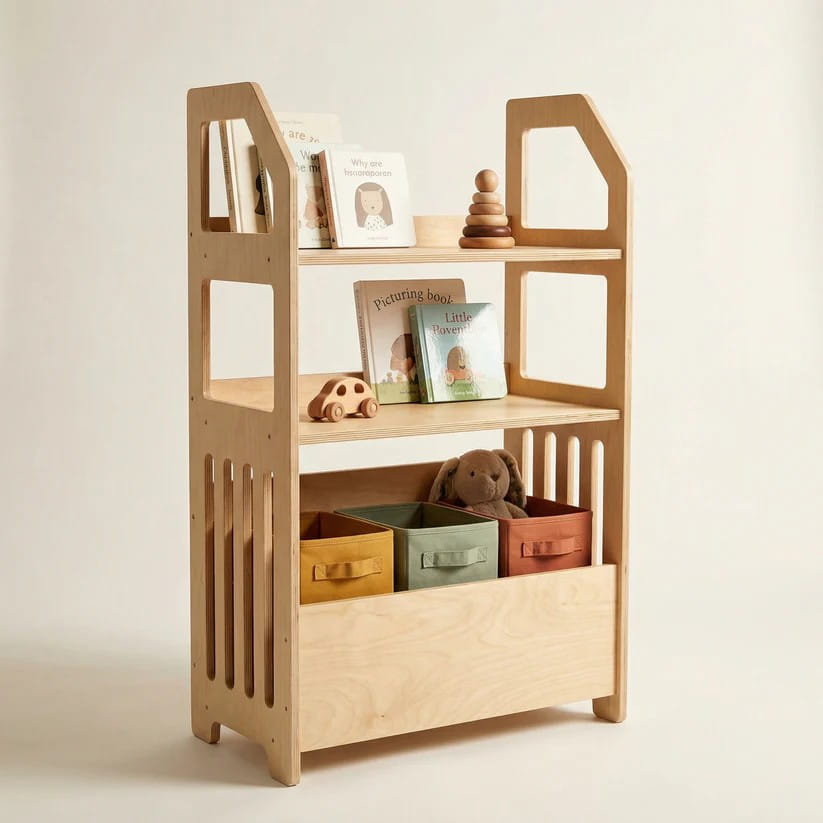 Montessori Wooden Shelf – Kids Storage Organizer
