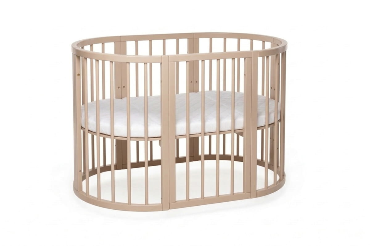 Round Baby Crib OLIN with Mattress - Cappuccino