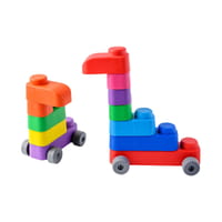 The soft texture makes the blocks safe to chew during teething, while their flexible shape and lightweight feel help develop motor skills and coordination. Add wheels and build towers, animals, vehicles, or anything your child can imagine.