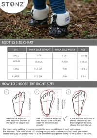 Stonz Toddler Puffer Booties are lightweight but warm winter boots for kids from 9 months to 2,5 years old. The 3M thinsulate keeps the booties cozy in temperatures as low as -20ºC. The booties are super easy to pull on and secure with two fasteners that make sure they don′t fall off. The adjustable fasteners and the wide opening of the booties also make sure they′ll be a perfect fit for months! The booties have a non-slip, water-resistant rubber soles and a warm fleece lining. Machine wash and dry inside out on delicate. Do not use hot water/heat when washing.