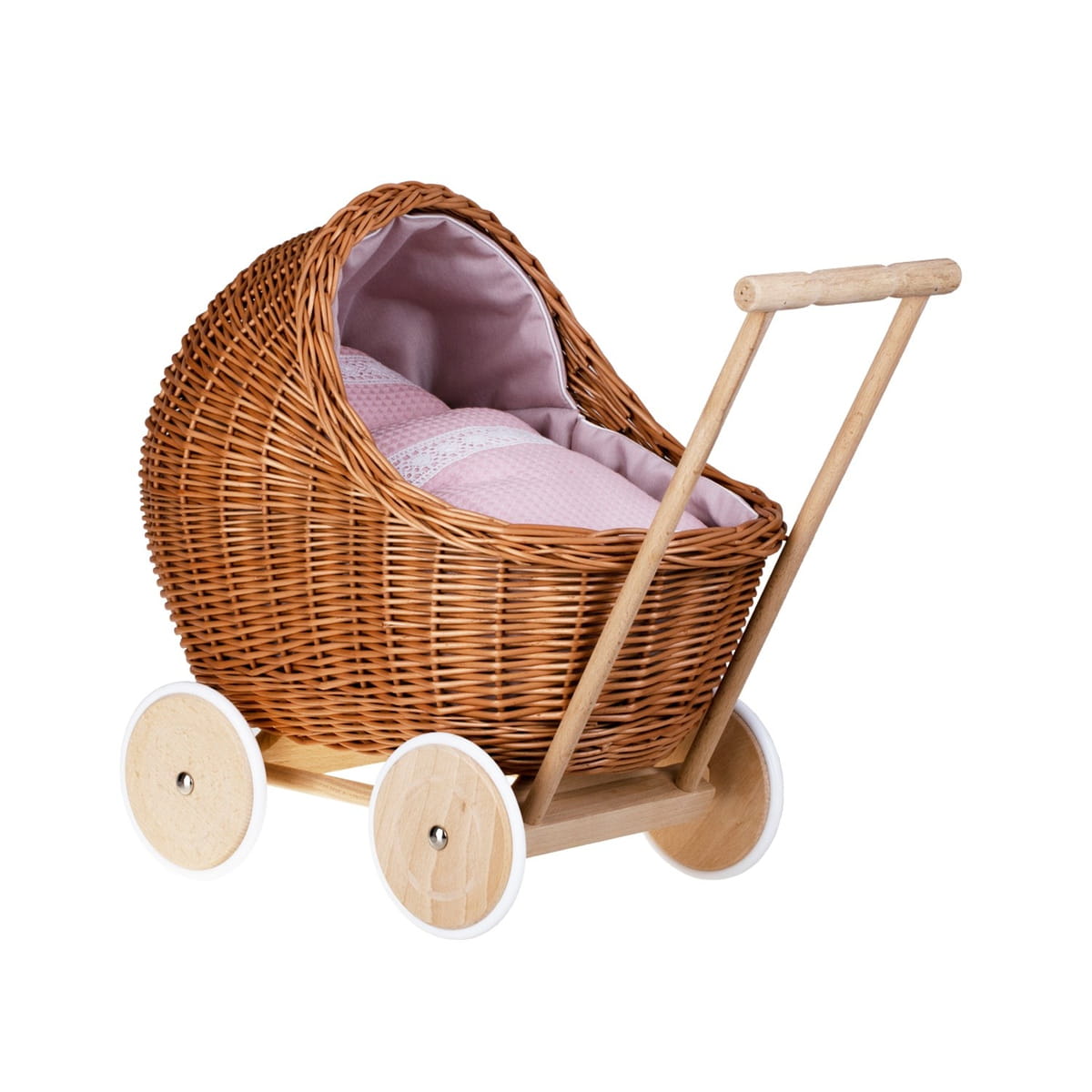 Wicker Doll Pram Lili – Pink Bedding