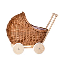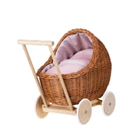 The wicker stroller is perfect not only for everyday play but also as a special nursery decoration. It can be used to carry dolls, teddy bears or other toys and for role‑playing games like house or family. Thanks to its elegant design and solid construction it is an ideal gift for birthdays, holidays or other occasions that will stay in the home for years.